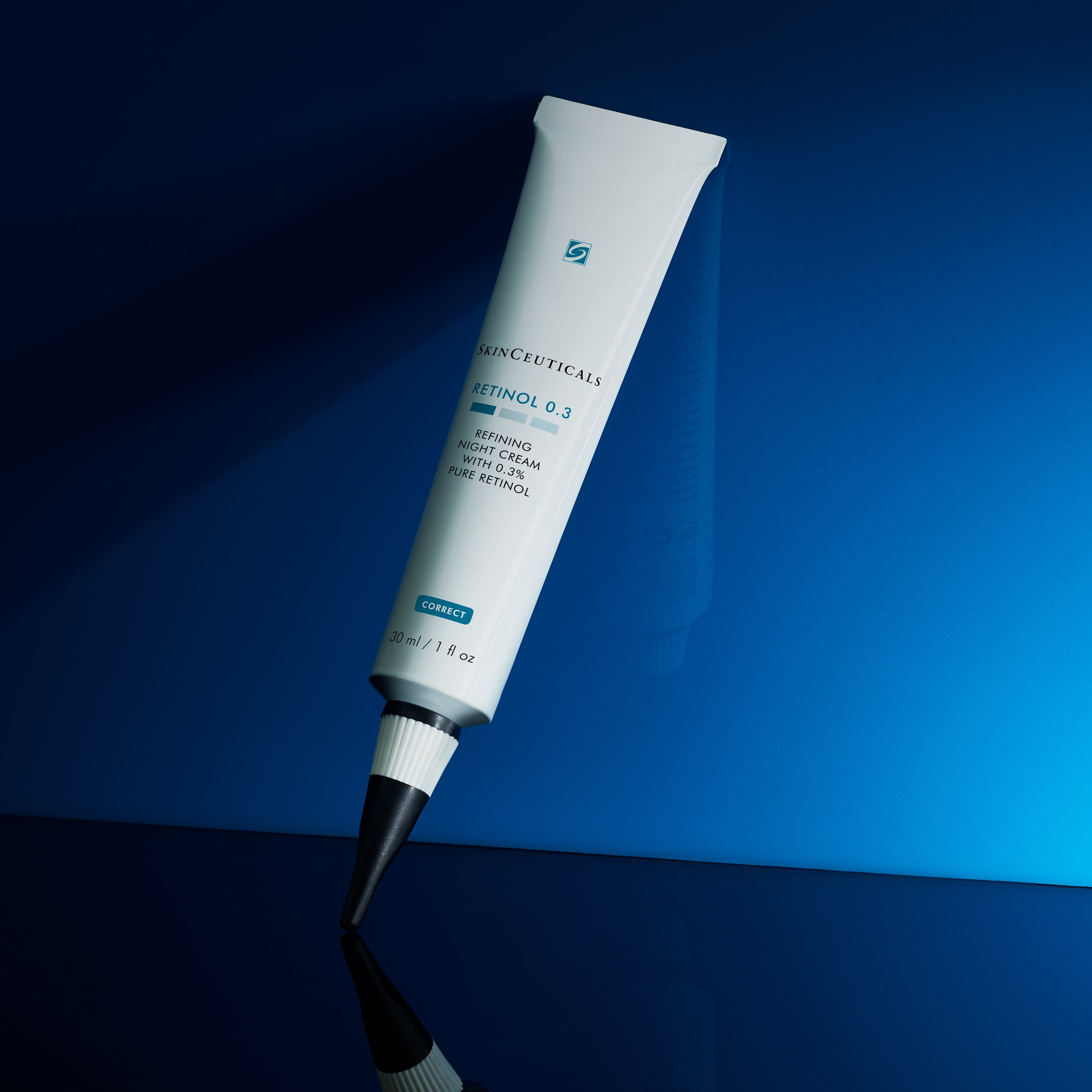 Retinol 0.3 is recommended for first-time retinol users. This potent nighttime treatment features 0.3% pure retinol enhanced with the latest stabilization and delivery technologies to ensure a steady, even release. Formulated with soothing bisabolol to minimize irritation and specially packaged to preserve its potency, this retinol face cream helps improve the appearance of fine lines, wrinkles, discoloration, blemishes, and pores by accelerating cellular turnover. Retinol 0.3 is ideal for continued use or conditioning skin as a prerequisite to SkinCeuticals Retinol 0.5.